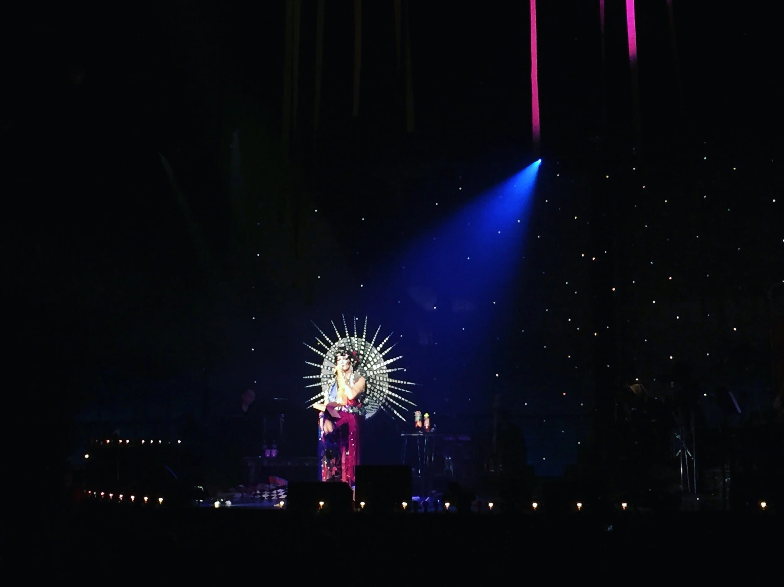 Mac was the tireless star, writer, co-director, and conceiver (or maybe the conceived? Late in the show, a hanging “womb” set piece descended over Mac and became a final costume in a stunning transformation). Even more, judy was ringleader, puppeteer, high priestess, spiritual leader. As such, decrees were handed down: perfection is for assholes. Don’t equate your equality with your ability to shop. Everything you’re feeling is appropriate. And yet, if this was judy’s own microcosmic vision of American society, judy rejected hierarchy and the global capitalist society that relies on it. Judy insisted that the intention was not to teach, but simply to remind us of things we had forgotten or buried, or that others had buried for us.